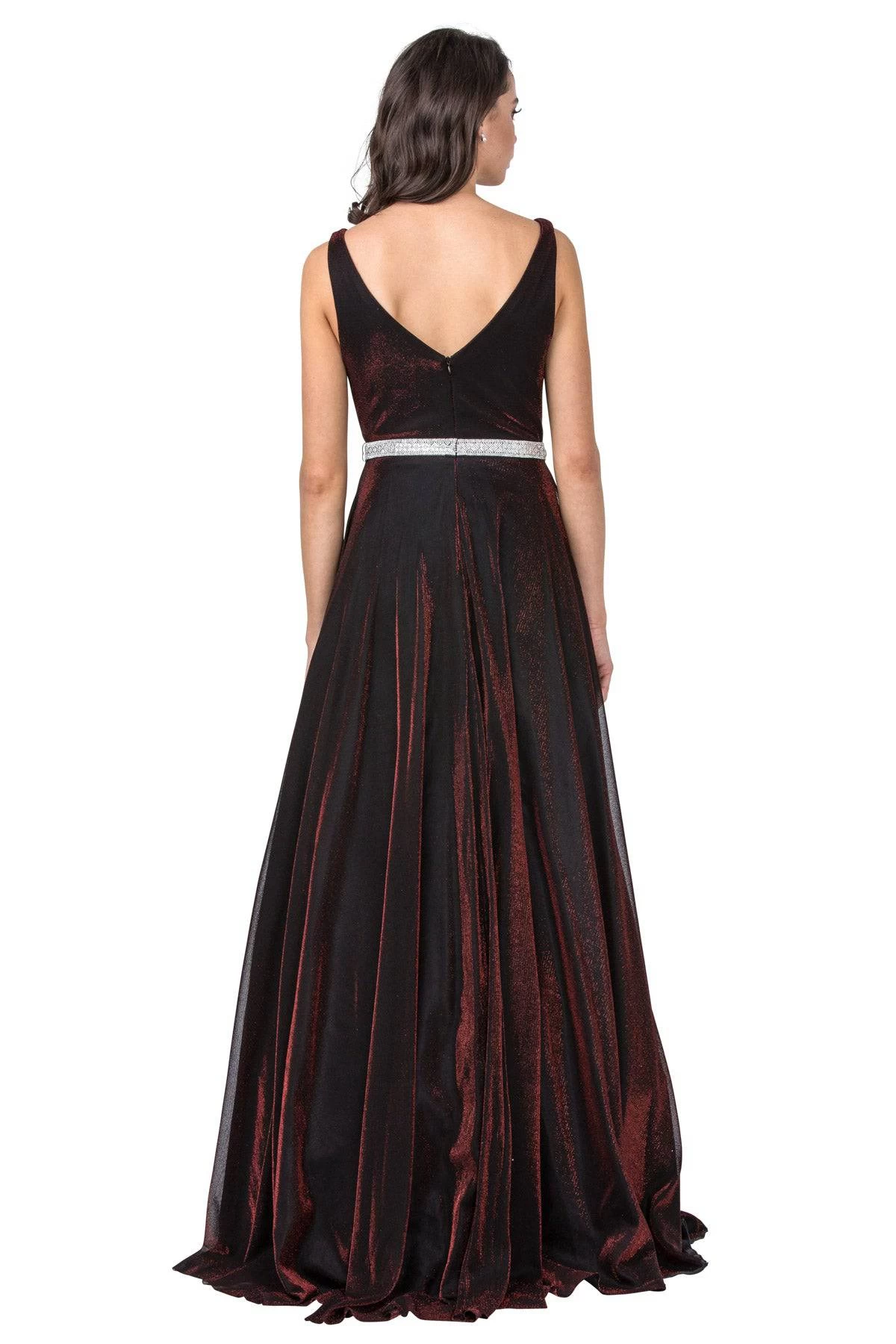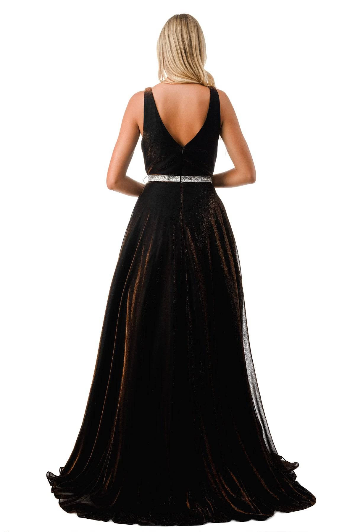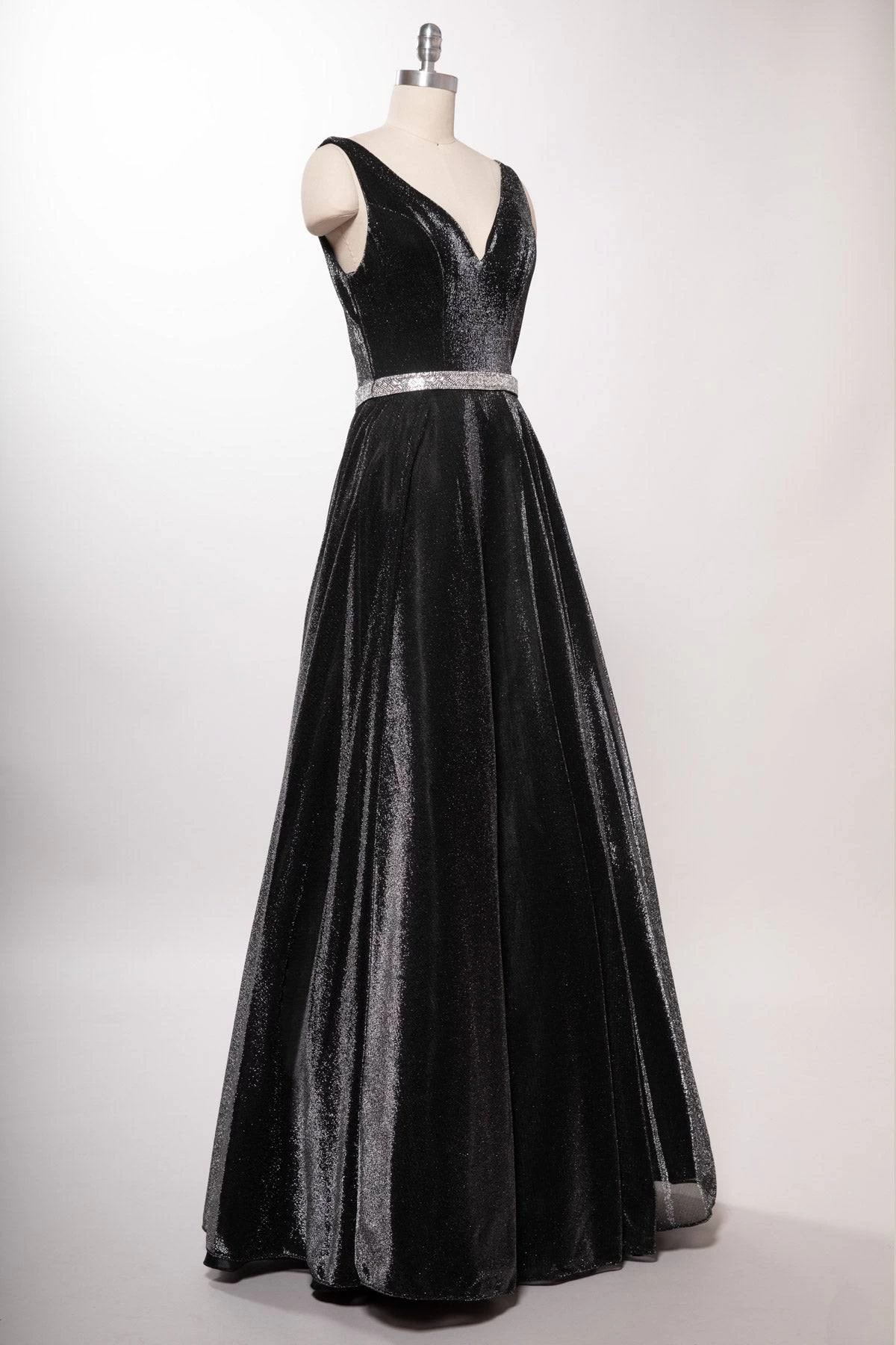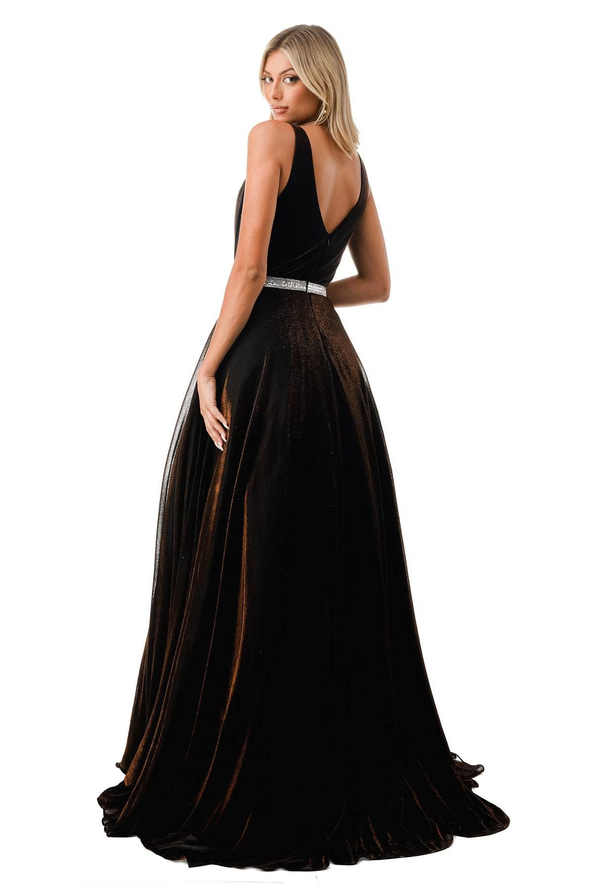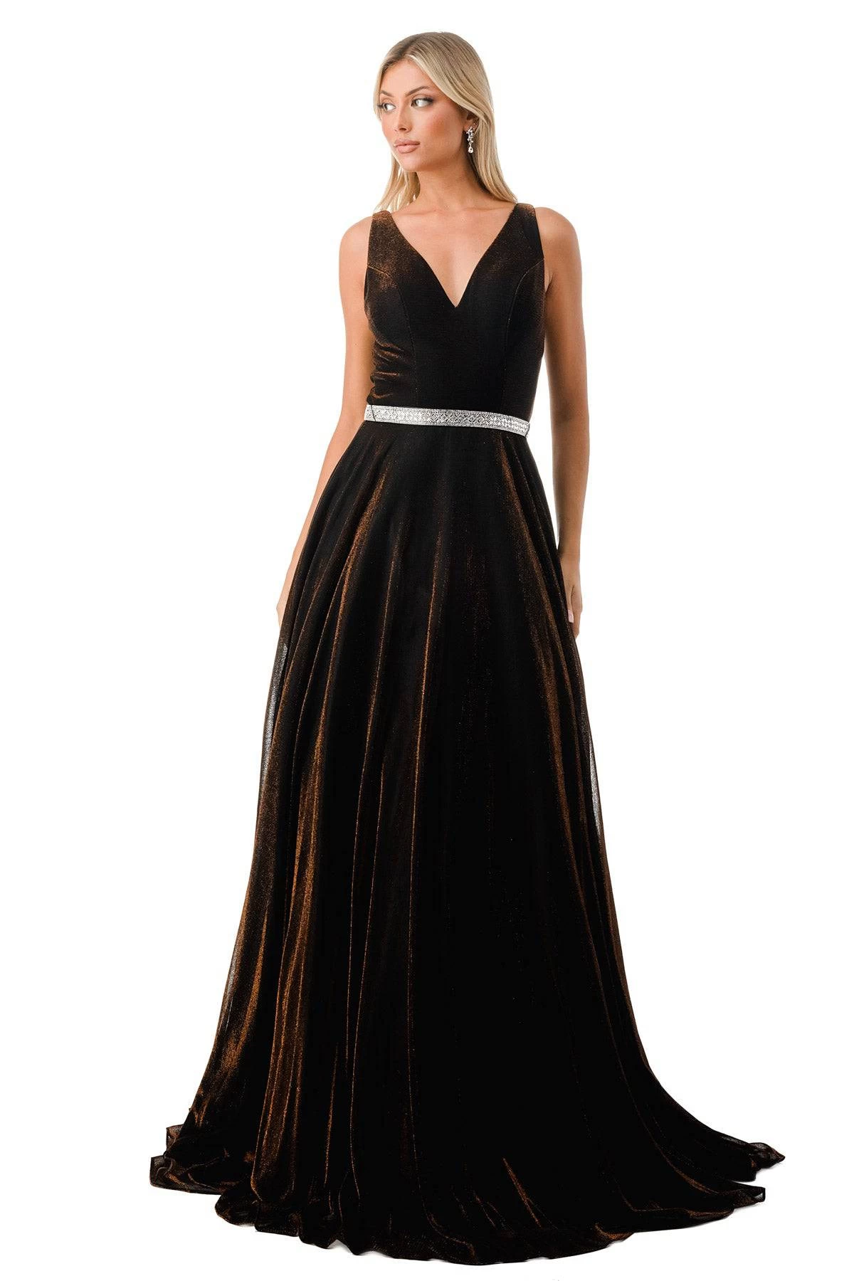 Aspeed Design D320 Shimmering Velvet A Line Dress With Crystal Stone Belt