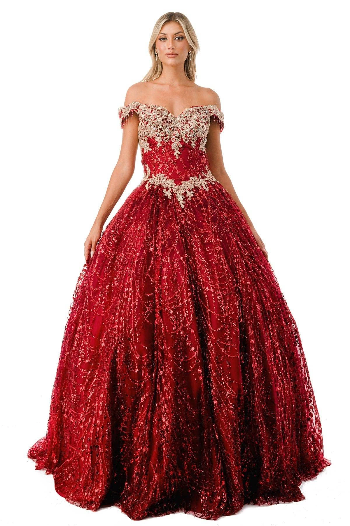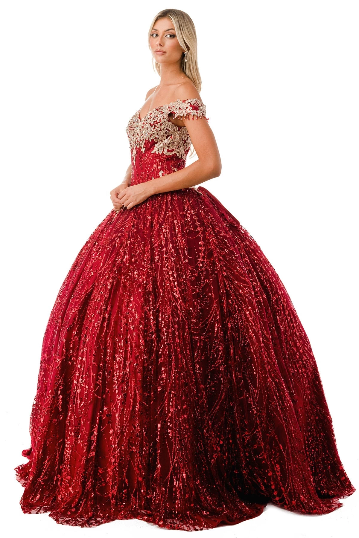 Aspeed L2364 Off Shoulder Lace & Sequin Quinceanera Dress