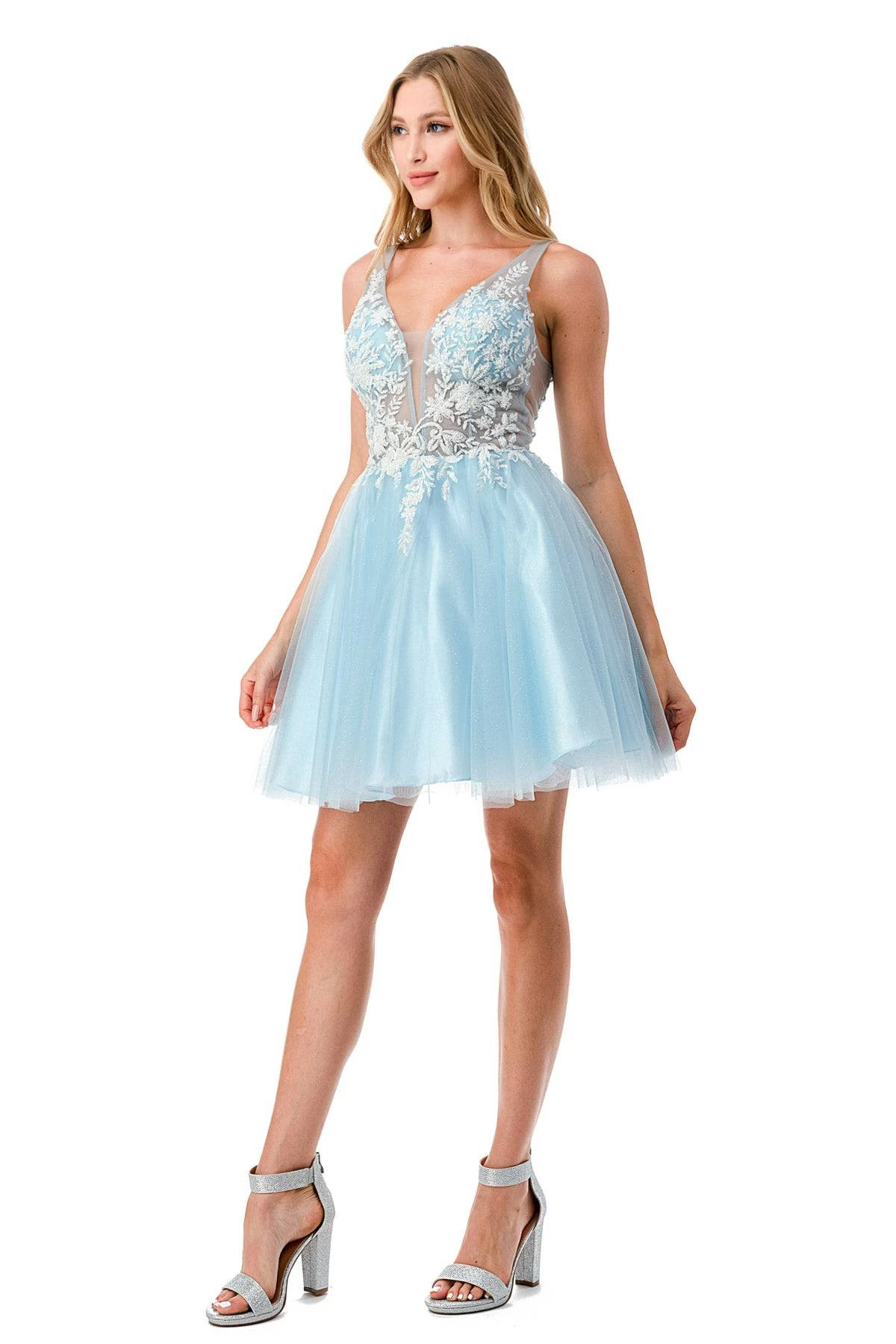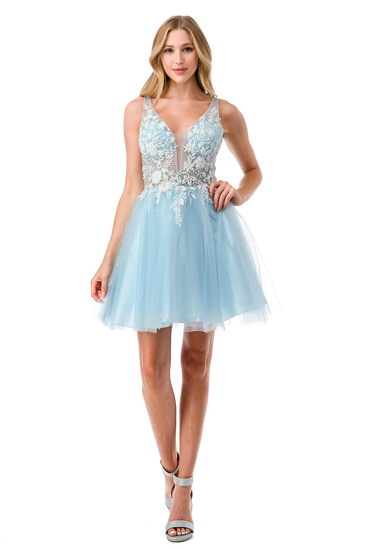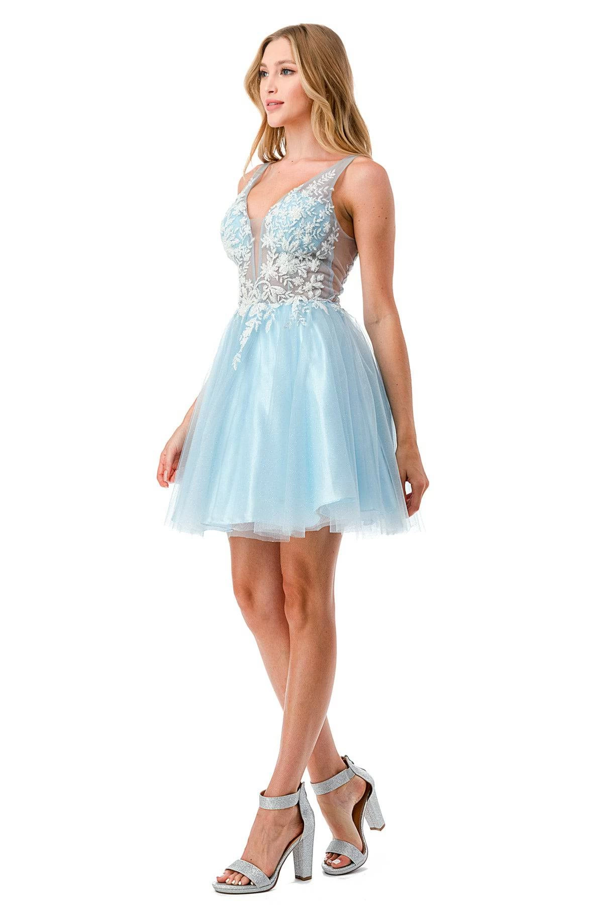 Aspeed S2724 Light Blue Lace & Sheer Short Dress with Tulle