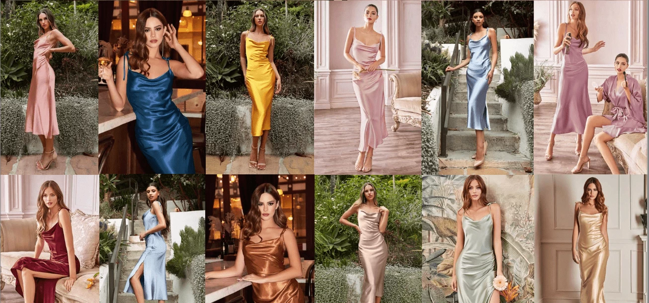 | Color | Emerald, Black, Burgundy, Champagne Gold, Burnt Orange / Burnt Sienna, Dusty Blue, Mauve, Sage, Burnt Orange, French Navy, Lipstick |