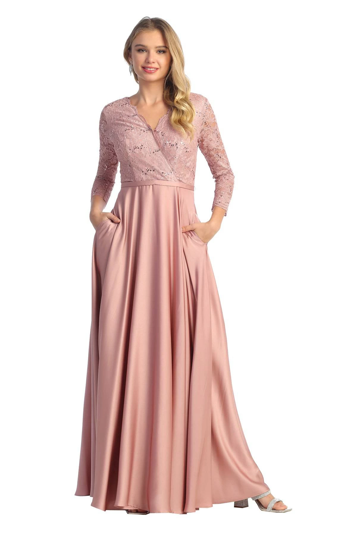Cindy Collection 1699 Lace Chiffon A Line Dress features stunning sequin embroidery and a wrap style at the bodice. Available from S – 4xl!