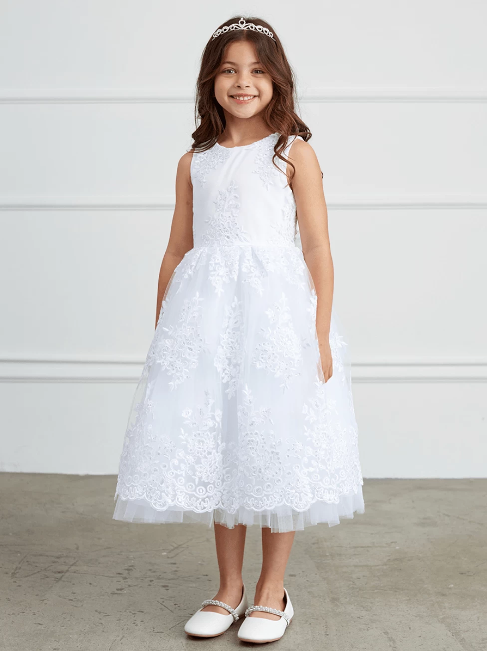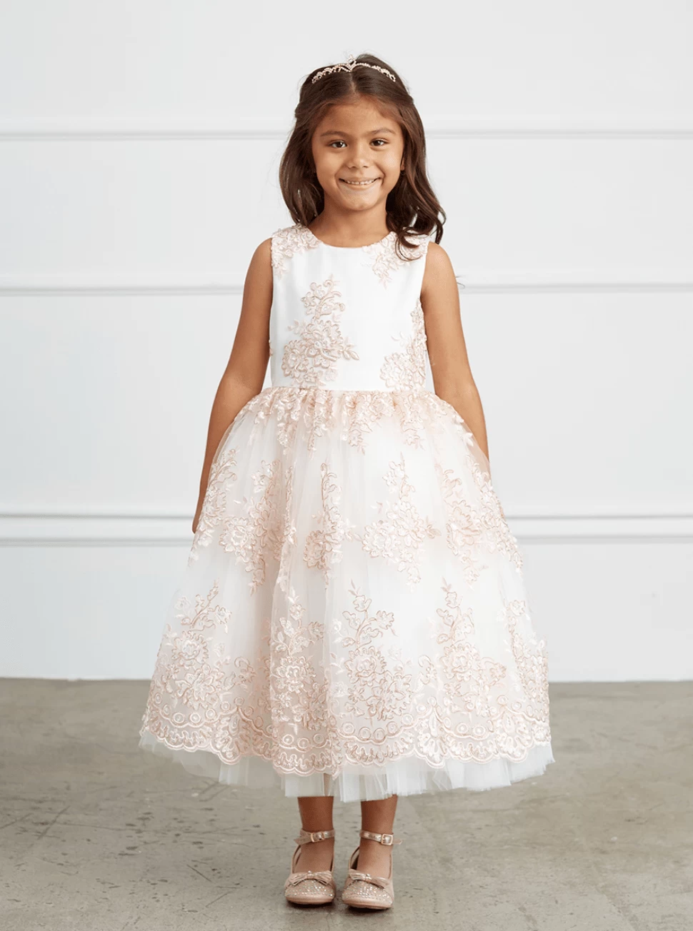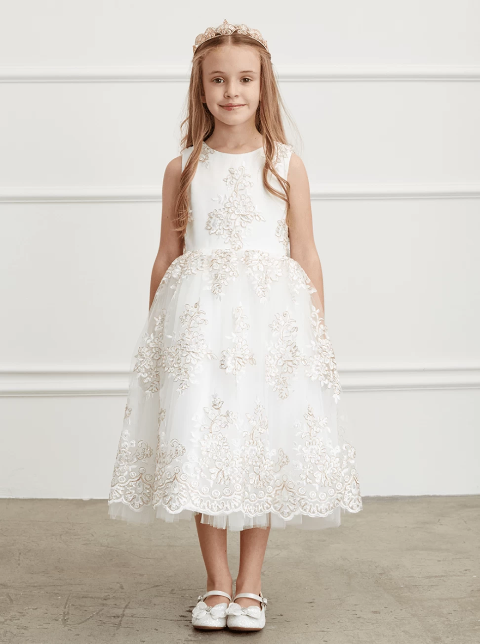 Kids Metallic Lace Embroidered Dress With Tulle Skirt #TK5816 | Norma Reed