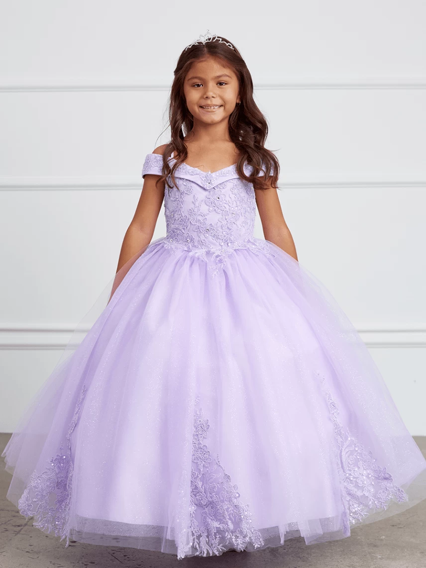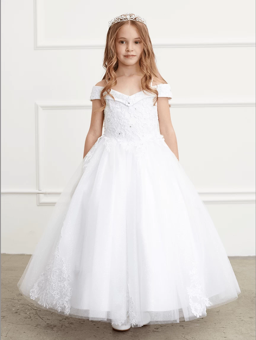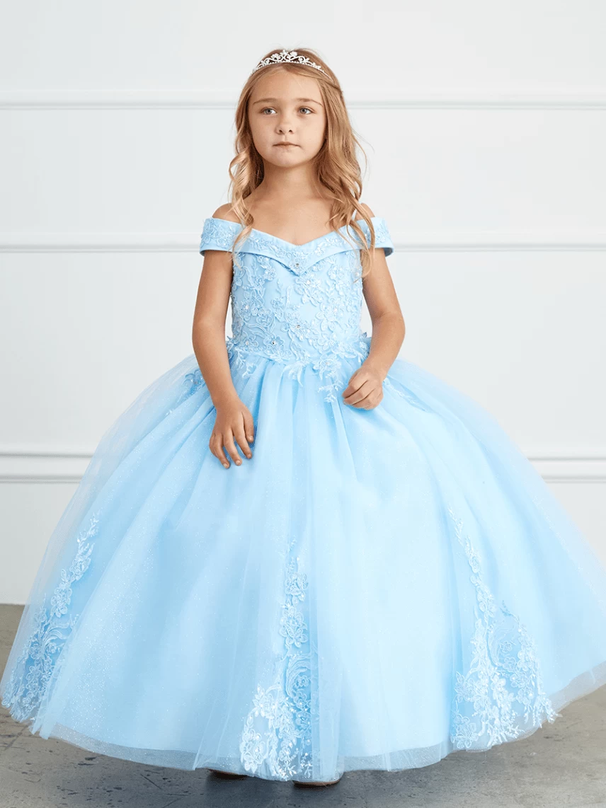 Prepare to have your little one look fabulous in this Kids Off Shoulder Neckline Dress Ball Gown #TK7034. | Norma Reed : Find the Perfect Kids Dress In Oshawa & Toronto, Come Visit Us In Store Today! Private Fitting and Tailor Available For The Custom Fit.