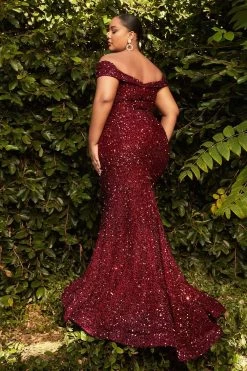 Cinderella Divine CD979C Plus Size Ruched Off Shoulder Slit Leg Dress
