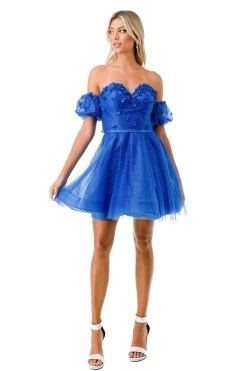 Aspeed S2748B Glittering Royal Blue Off Shoulder Short Dress