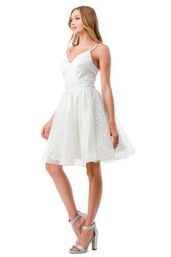 Aspeed S2752C Light Blue Off Shoulder Lace Floral Short Dress