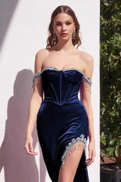 Cinderella Divine 7483 Sexy Corset Dress With Open Back & High Leg Slit
