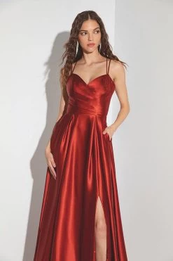 Cinderella Divine 9925 Pleated Slit Leg Dress With Pockets | 7 Colors | 4xl